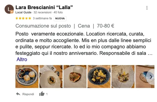 Ogni piatto, creato dal talento di Augusto Valzelli, è studiato attentamente per offrire un'esperienza che soddisferà