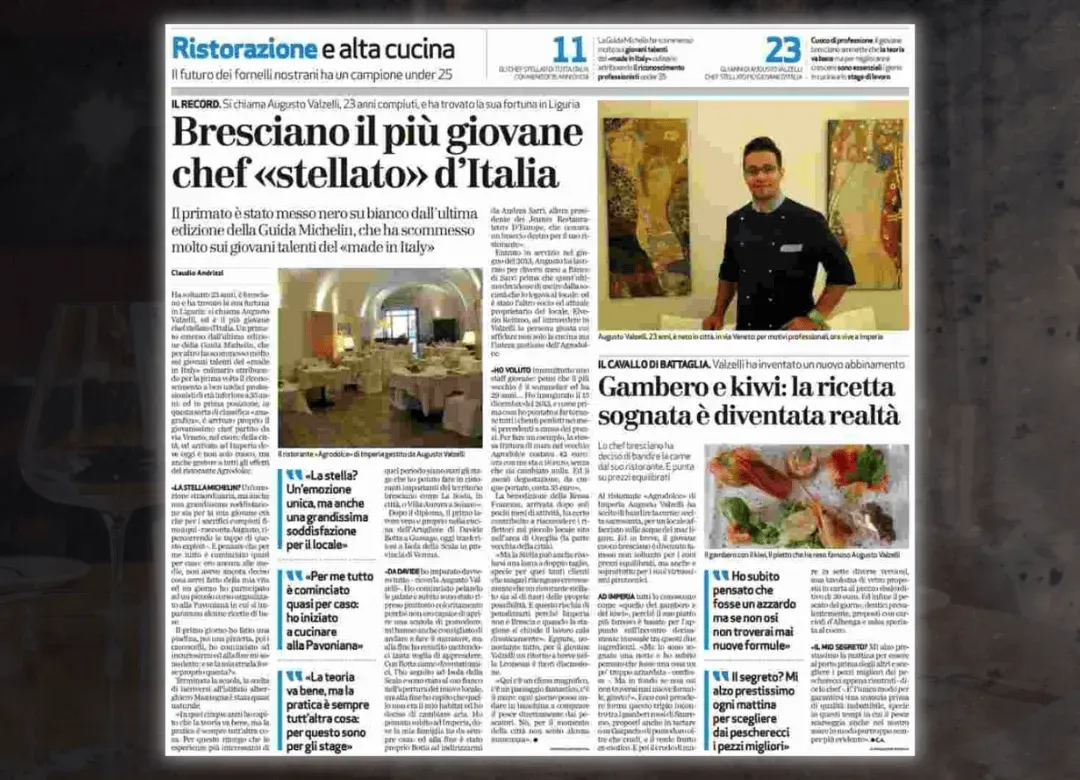 Augusto Valzelli, bresciano doc di 29 anni, da ben 6 anni è il più giovane chef stellato d'Europa: